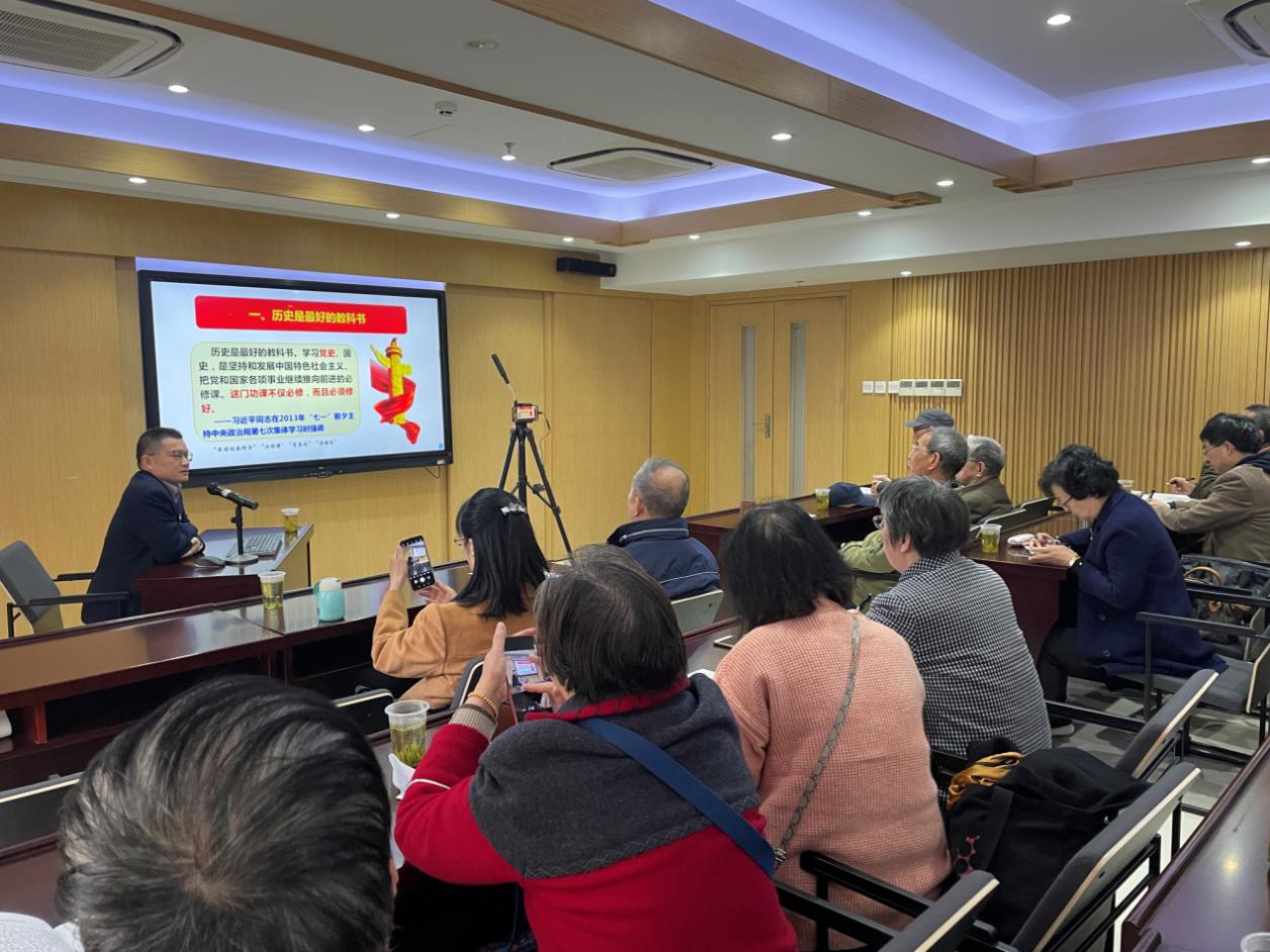 3月25日上午,离退休党组织党史学习教育党课系列活动第二讲在零陵校区307会议室举行。sunbet申搏官网马克思主义学院陈荣武教授受邀作题为“中国共产党建党100年来的伟大历程和基本经验”的报告。会议由退休党委书记顾家柱主持。