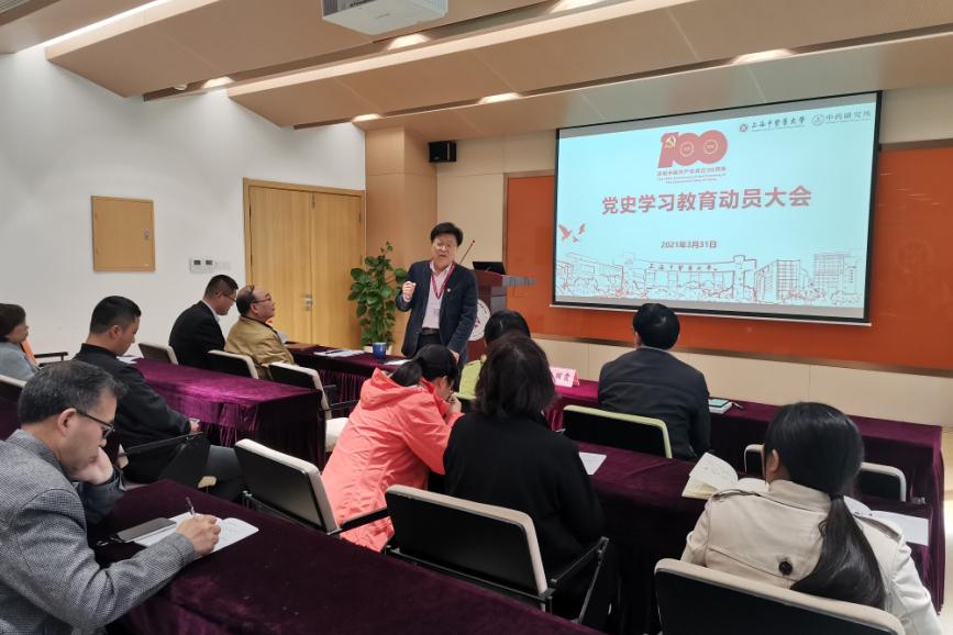 中药研究所副所长王长虹传达了习近平总书记在党史学习教育动员会上的重要讲话精神,以及市委、市教卫工作党委和学校党委党史学习教育动员会精神。