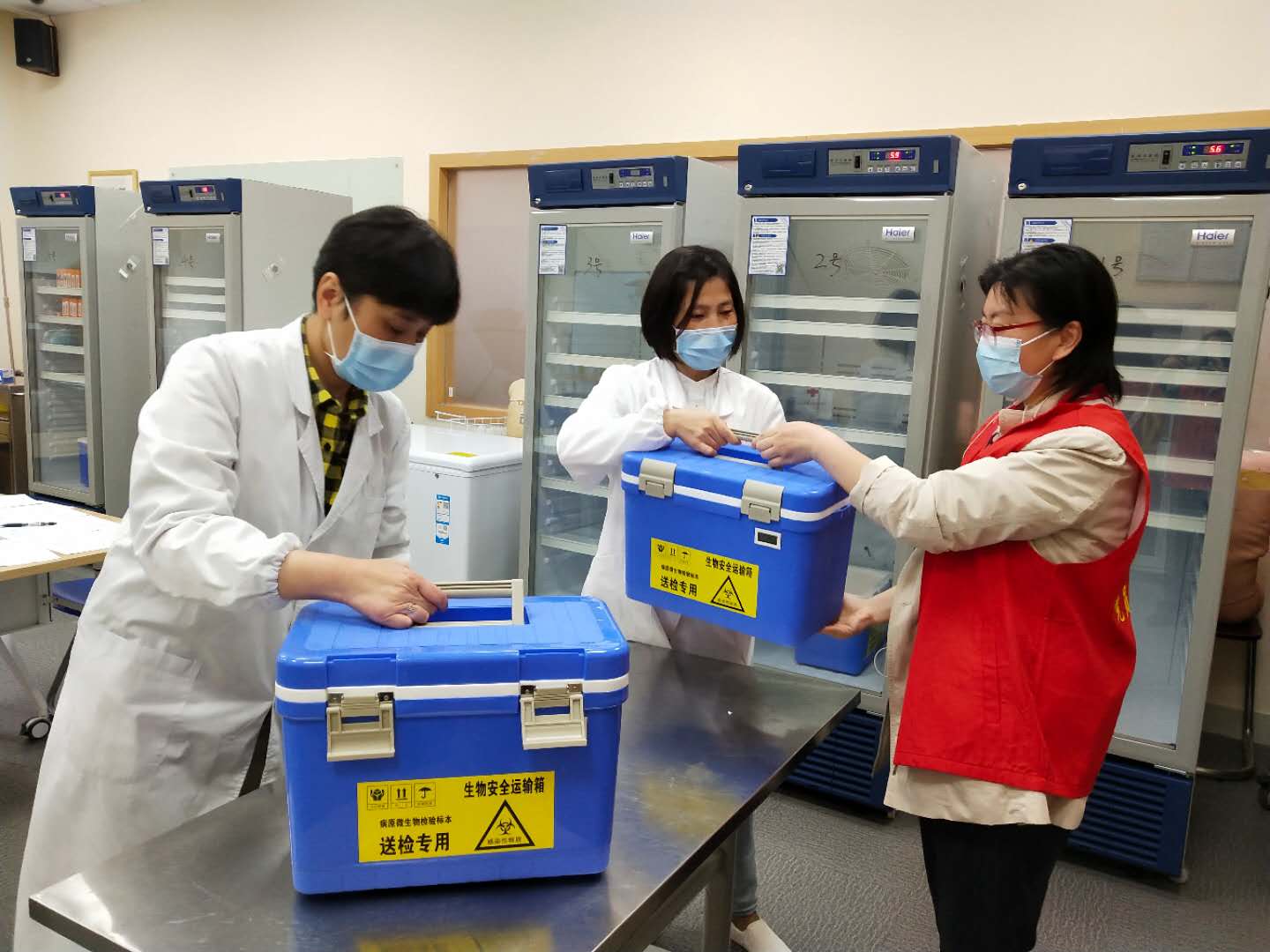 资产管理党支部的党员们从冰柜设备采购、接种工作台添置,再到设备现场调试、防疫物资配备,现场志愿服务,全程跟进落实,不遗余力。