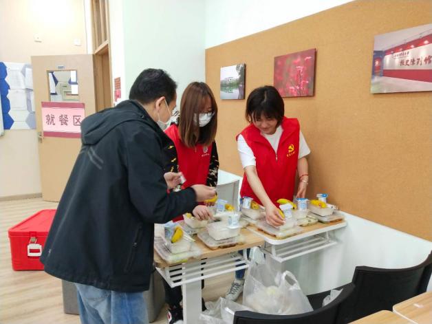 膳食管理服务科党员在接到供餐任务后,从菜品设计,到客饭装盘,再到送餐配送,每个环节都一丝不苟,精心准备,尽力让疫苗接种的医护人员、工作人员吃得满意、干活有力。有一次接种工作时间长、任务重,预计需要持续干到晚上7点,膳食科立即调度配送来糕点牛奶,为下午岗位上的同志及时补充体力。