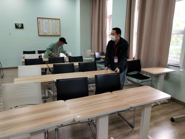 教室管理科党员每次总要为调度教室作为留观区、等候区而动足脑筋,因为接种人数多,留观空间需求大,但恰逢学校考试周,因此往往需要与教务处、研究生院等部门多方协商确认,调整教室安排。留观结束后,还需要及时整理桌椅,打扫教室,确保第二天教室的正常使用。
