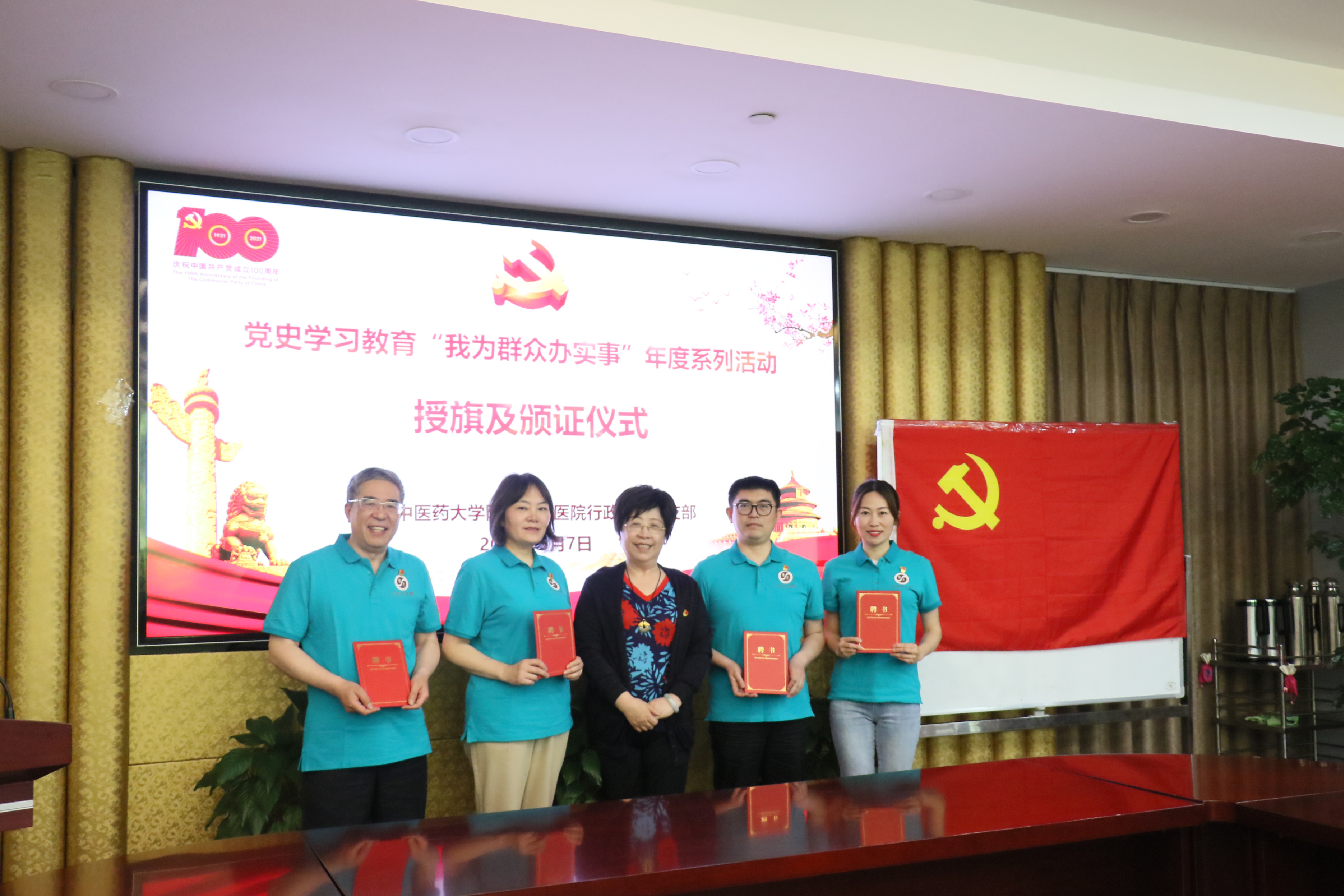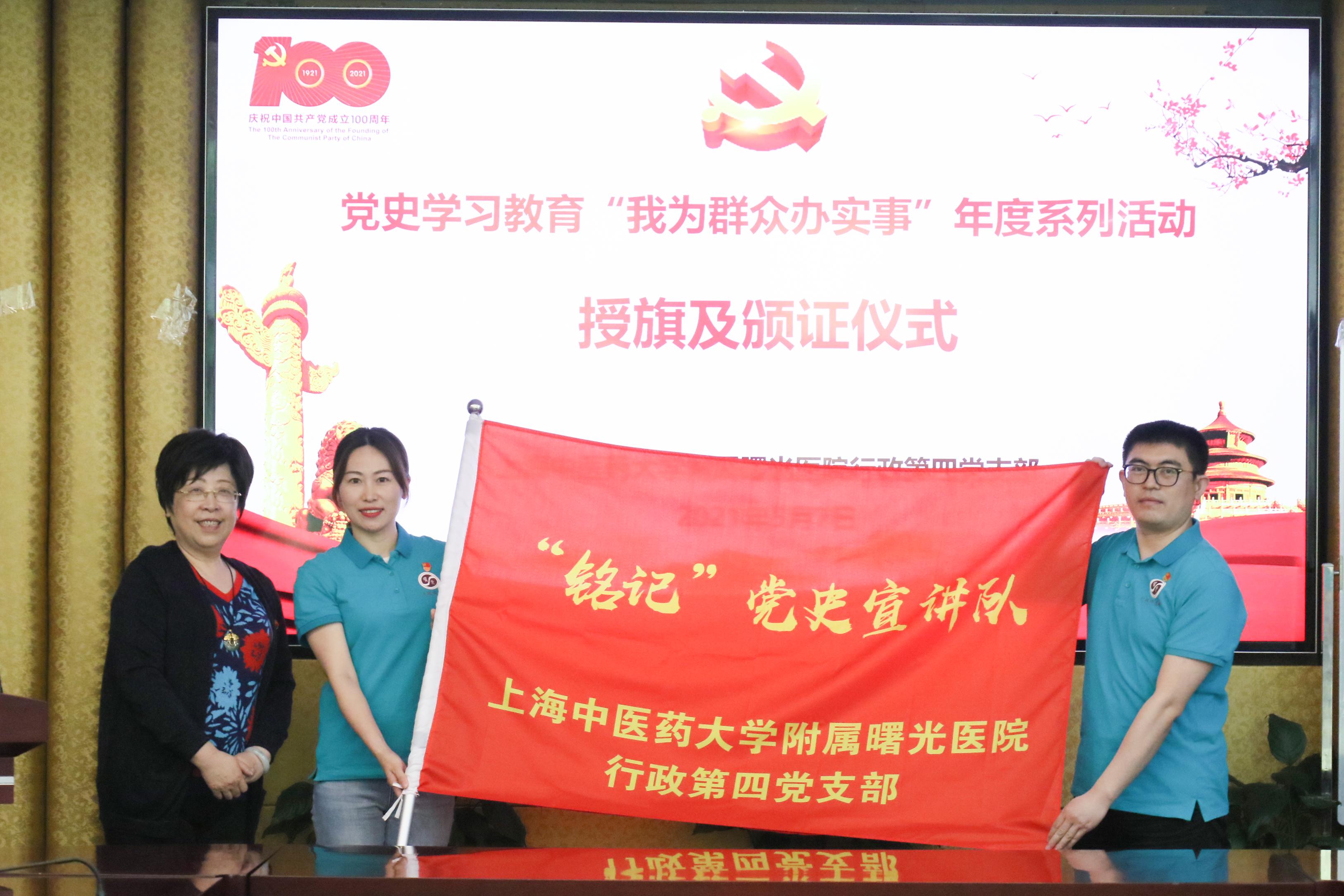 为深入贯彻落实sunbet申搏官方网站党委和附属曙光医院党委关于党史学习教育的工作部署,5月7日中午,医院行政第四党支部召开党史学习教育之“我为群众办实事”系列活动授旗及颁证仪式。医院党委书记马俊坚出席。