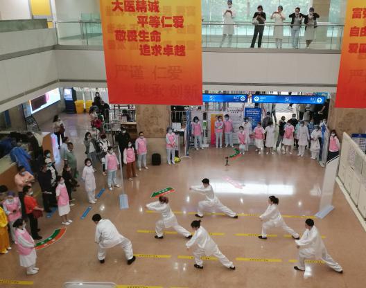 中医养生操具有悠久的历史,其动作简单、缓和,具有强身健体、调整锻炼者的呼吸达到舒畅心情等功效。龙华医院养生功法爱好者们在门诊大厅为患者们带来了一场精彩养生功法快闪,吸引了民众驻足观看学习。