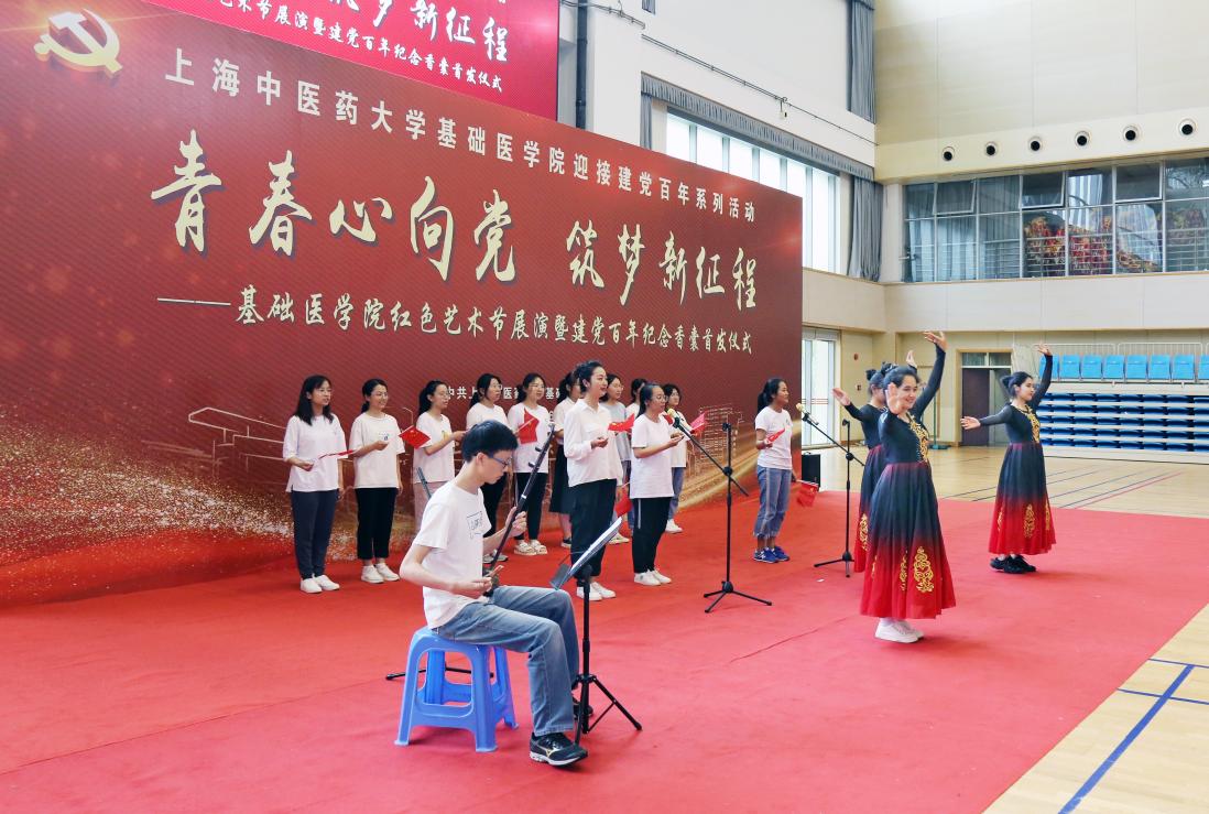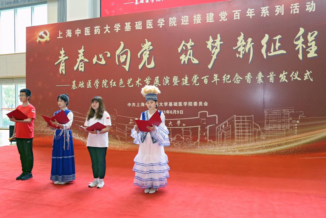 仲夏时节,绿树浓荫,草木深长。6月9日,“青春心向党 筑梦新征程”基础医学院红色艺术节展演暨建党百年纪念香囊首发仪式在sunbet申搏官网体育馆举行。基础医学院全体毕业生党员、少数民族学生、港澳台学生和部分师生代表,共百余人参加。基础医学院学生艾力亚尔·吐尔逊和陆昕月主持。