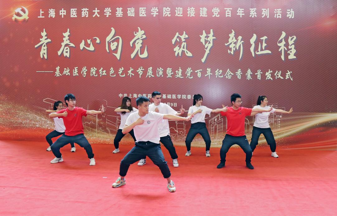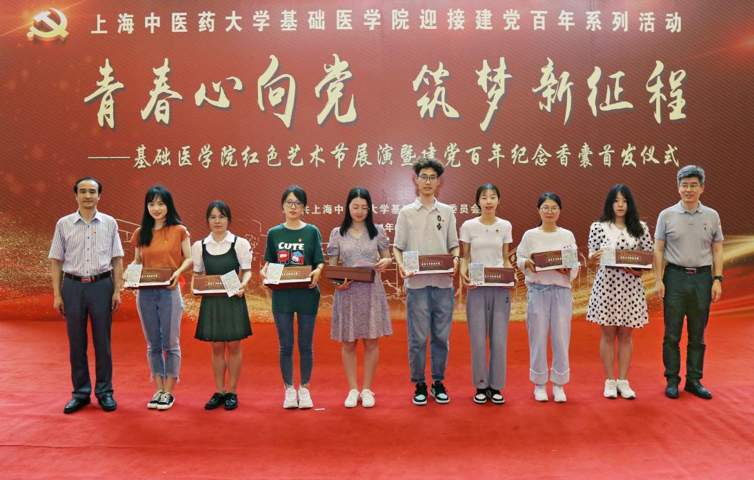 红色艺术节展演在少数民族预科班学生朗诵红色家书《李大钊 青春》中拉开序幕。武术《闻鸡起舞》,展现当代大学生努力练就过硬本领、锻炼强健体魄,争做堪当大任的时代新人。优秀摄影作品展示、书法快闪、三行情书展示依次进行,多维、立体呈现出中医学子用实际行动献礼建党百年的决心。许家佗、何建成为毕业生党员赠送以优秀摄影作品制成的明信片及建党百年纪念香囊,勉励毕业生党员牢记初心使命,建功新时代。红色艺术节在师生合唱《唱支山歌给党听》中落幕。