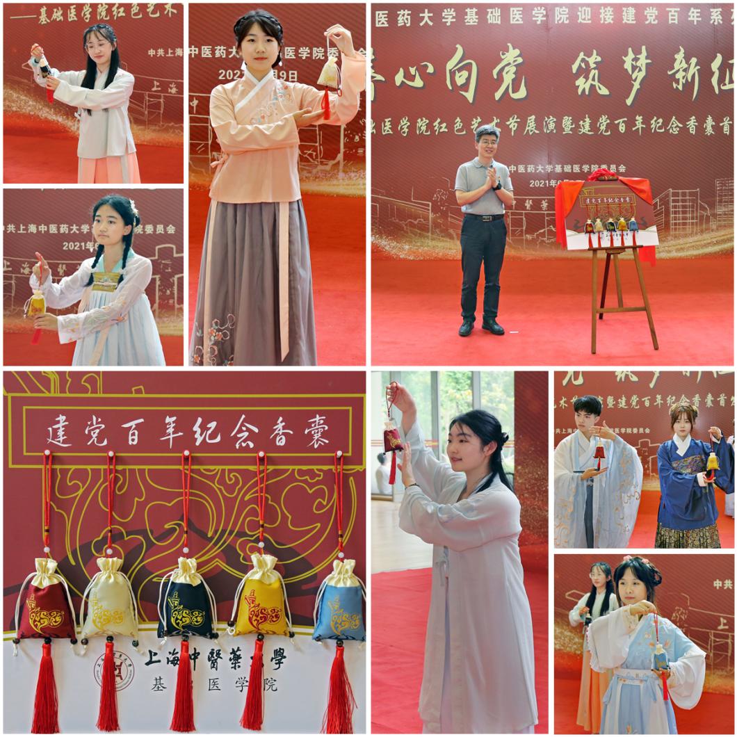 为引导广大学生坚定理想信念,厚植爱国主义情怀,基础医学院积极响应党中央号召,以追念先贤、高扬家国情怀的传统节日端午节为契机,开展建党百年纪念香囊的设计征集和首发仪式,将红色元素巧妙融入中医药文化,创新红色文化传播方式,以实际行动喜迎建党百年。