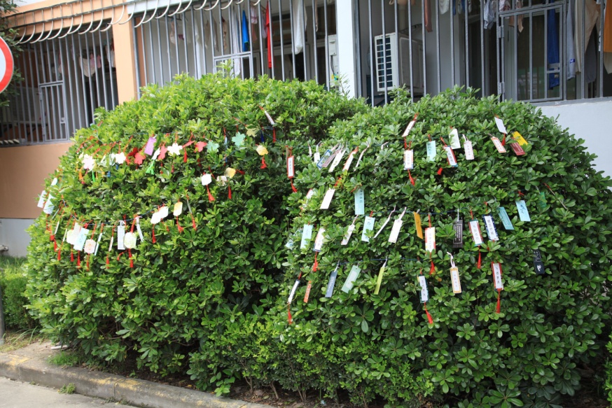 为营造良好的毕业季氛围,在学生生活园区食堂门口,支部党员们精心布置一颗爱心祈福树,树上挂满了支部党员,以及物业阿姨、食堂师傅等后勤工作者的祈愿卡,为2021届毕业生送上最诚挚的祝福和嘱托,希望给他们留下灿烂美好的青春回忆,让他们饱含热情开启下一段人生之旅。