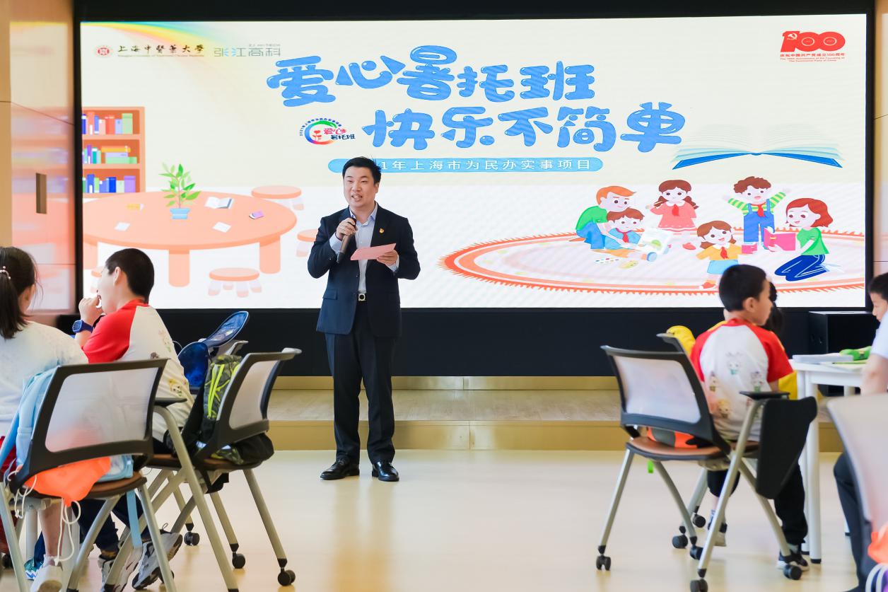 6月28日上午,2021年“爱心暑托班”开班仪式在sunbet申搏官网大学生创新创业实践园举行。仪式在庄严的国歌声中拉开序幕。校党委副书记、副校长朱惠蓉,共青团上海市委员会学校工作部部长任浡,共青团浦东新区委员会副书记李慧,张江高科党委委员、副总经理郑刚,张江高科董事会办公室主任、第四党支部书记郭凯,校工会专职副书记车荣华、保卫处处长孙鸿杰、后勤保障处处长周强峰、团委书记吴平、针灸推拿学院党总支副书记马杰、康复医学院党总支副书记毕亚男出席本次活动。