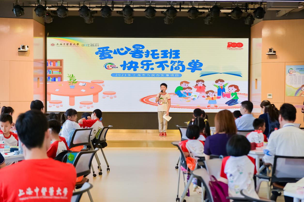 爱心暑托班学生代表杨家齐代表全体学生发言,他向无私关爱学生们的老师和陪伴大家的志愿者哥哥姐姐表示感谢,并表达对本次暑托班课程的充分期待。