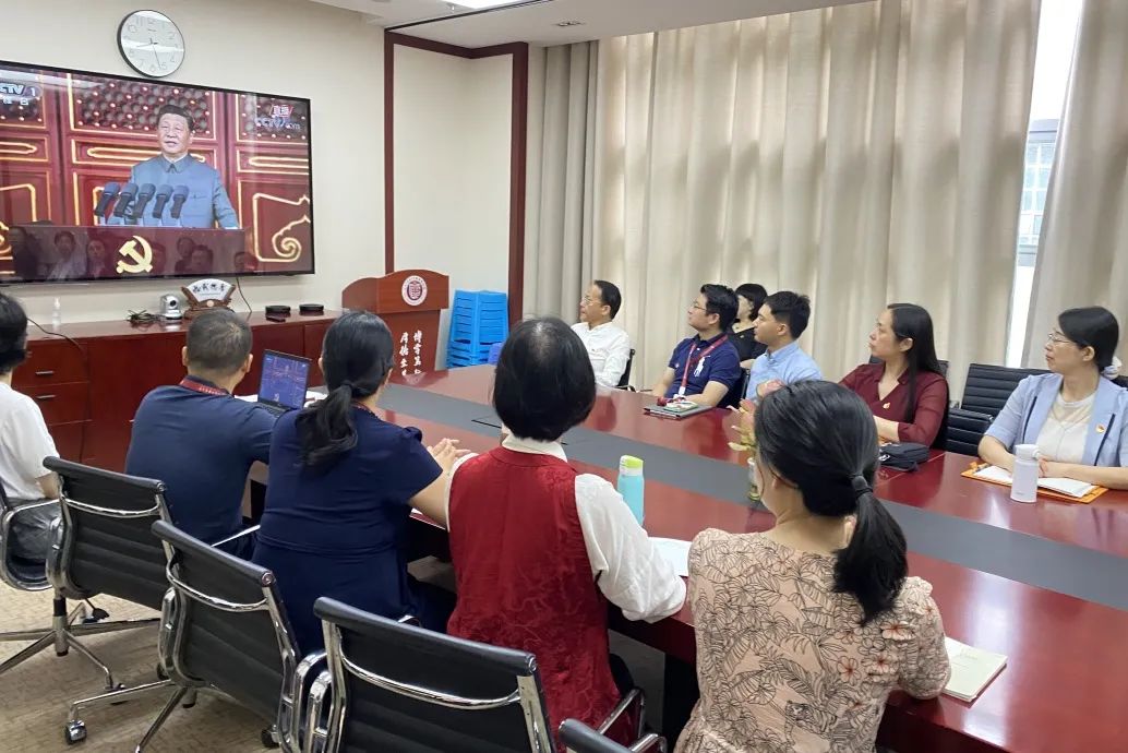 学校党委高度重视,广泛动员和组织干部、党员和一线教师、学生、医务人员认真收看收听大会实况直播。学校党政领导、校本部中层干部、机关党支部书记和党员在行政中心301会议室集中收看。