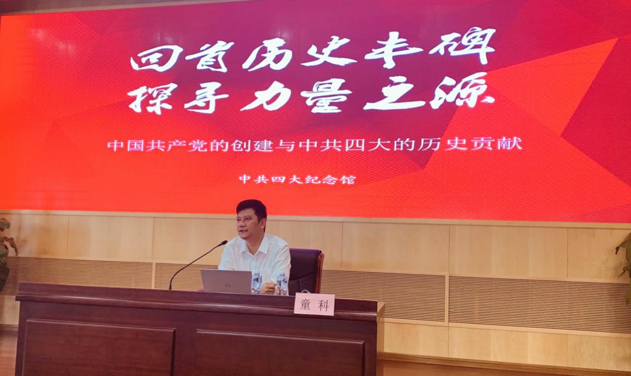 童科围绕中国共产党的创建和中共四大的历史贡献两大部分展开了一场别开生面的党史专题培训。从石库门到天安门,从兴业路到复兴路,围绕“党的诞生地为什么是上海”“马克思主义的传播与中国共产党的创建”“从中共一大到中共四大”“中共四大的历史背景、主要成果和伟大贡献”,阐述近代中国、近代上海、近代虹口、马克思主义的传播、中国共产党的创建以及中共四大的历史变迁和发展脉络,加深一步了解中国共产党为什么“能”、马克思主义为什么“行”、中国特色社会主义为什么“好”。