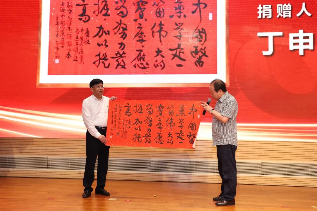 sunbet申搏官网客座教授、上海市书法家协会主席丁申阳向学校捐赠一幅书法作品,内容为毛泽东同志对中医药作出的重要指示“中国医药学是一个伟大的宝库,应当努力发掘,加以提高”,鼓励学校师生在中医药守正创新、传承发展之路上开拓进取,不懈奋斗。