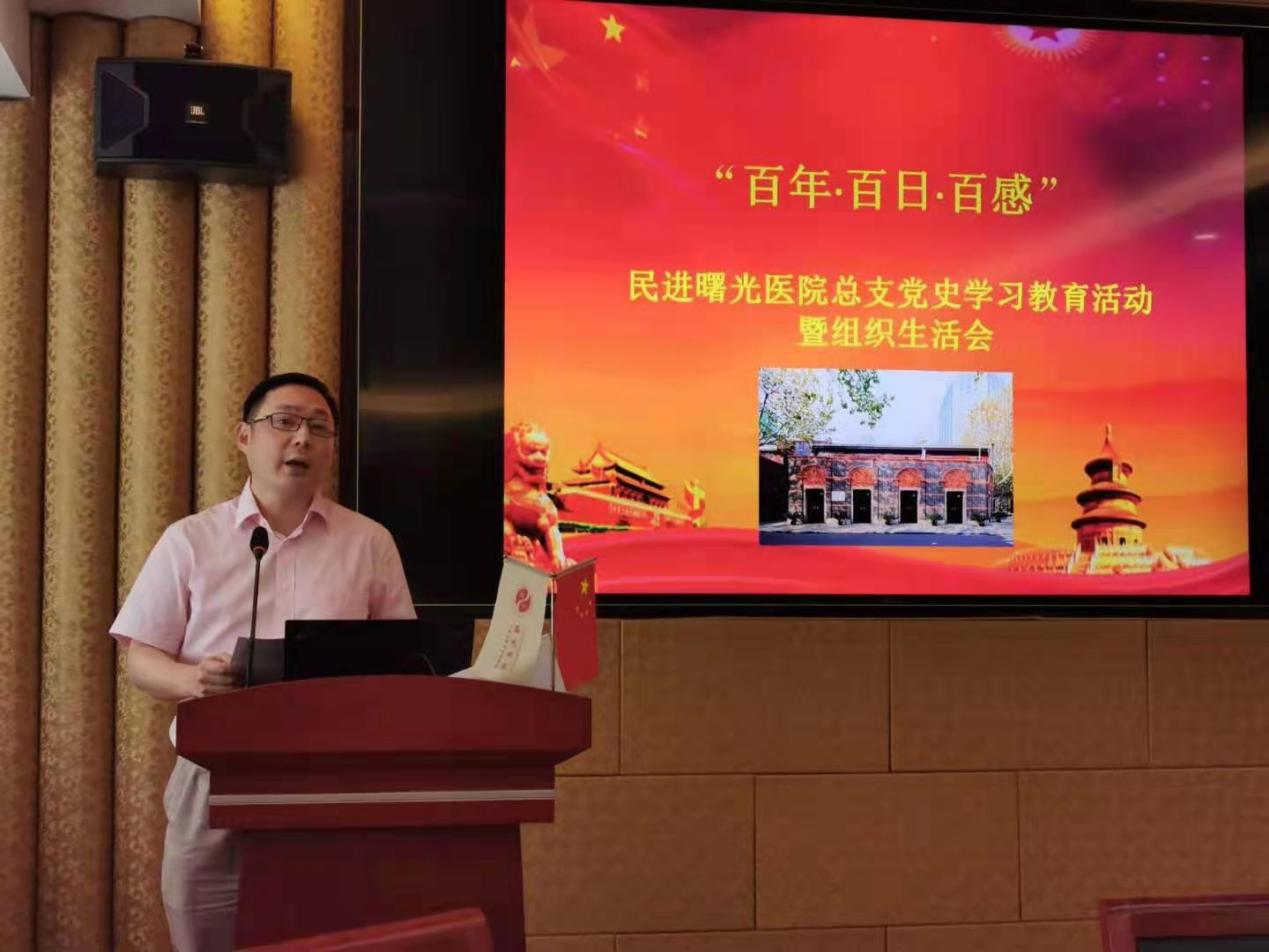 为贯彻落实习近平总书记在党史学习教育动员大会上强调的学党史、悟思想、办实事、开新局的指示和中共中央办公厅《关于在全社会开展党史、新中国史、改革开放史、社会主义发展史宣传教育的通知》文件精神,传承红色基因,夯实政治基础,6月30日,民进曙光医院总支举行“百年·百日·百感”党史学习感悟活动。sunbet申搏官网附属曙光医院党委书记马俊坚,民进上海市委员会医药卫生专委会副主委叶伟成,民进上中医委员会副主委沈卫东、老领导蒋有倩和殷岫绮等,以及民进曙光医院总支部分成员出席会议。曙光医院组织统战部部长练慧及医院其他民主党派负责人和骨干到会。会议由民进曙光医院总支主委何峥主持。