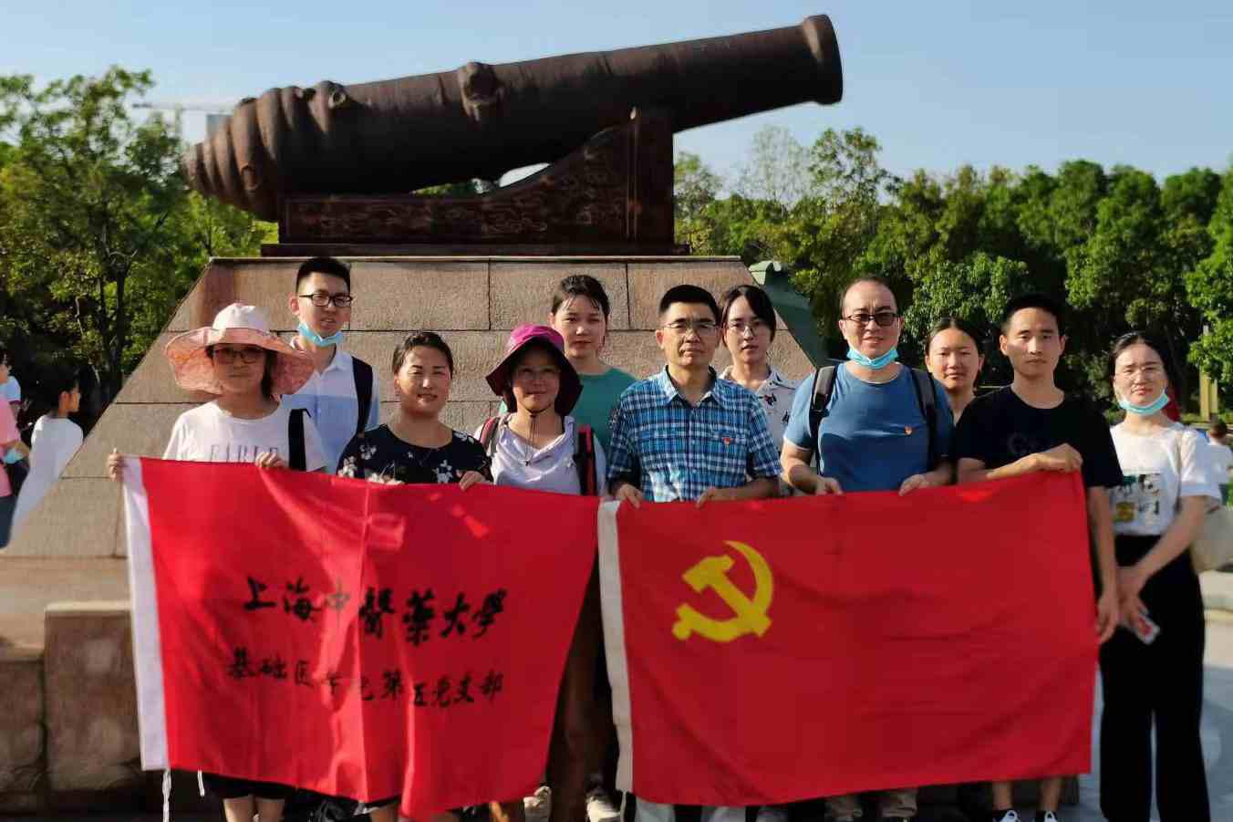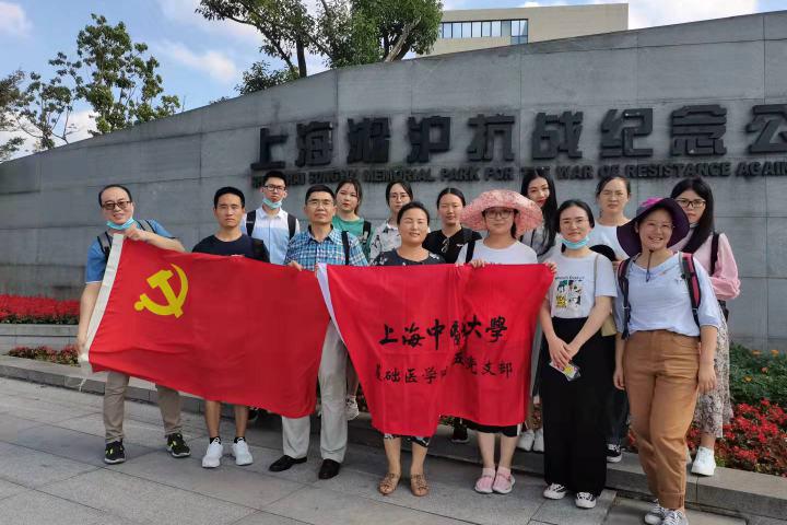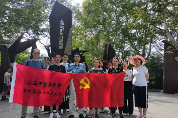 在中华人民共和国成立72周年之际,为践行社会主义核心价值观,弘扬爱党爱国的崇高精神,从党的百年奋斗历史中汲取前进力量,10月4日下午,基础医学院第五党支部党员师生及入党积极分子在支部书记邵水金的带领下,前往上海市爱国主义教育基地、上海党史教育基地——淞沪抗战纪念馆和吴淞炮台湾国家湿地公园实践学习。