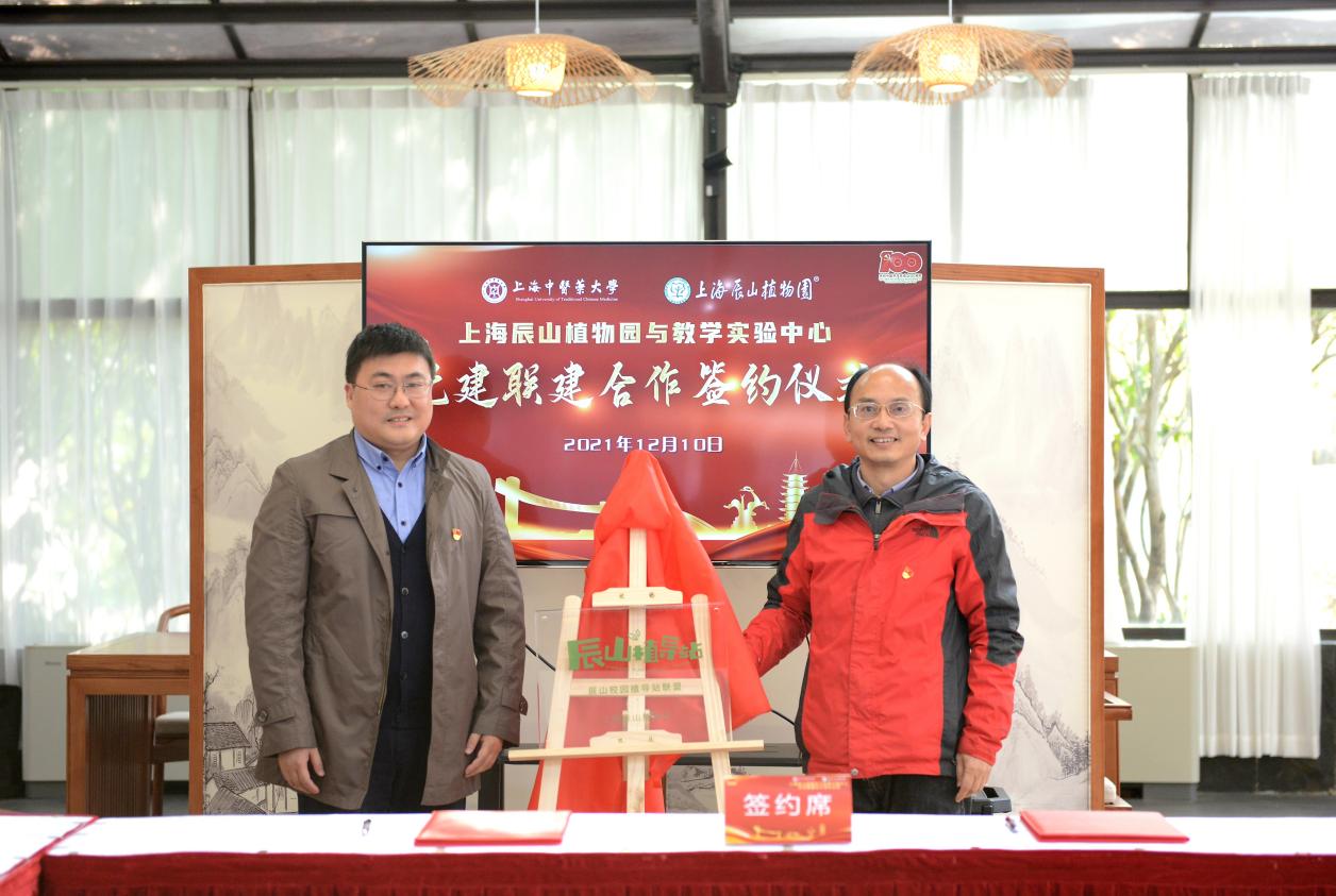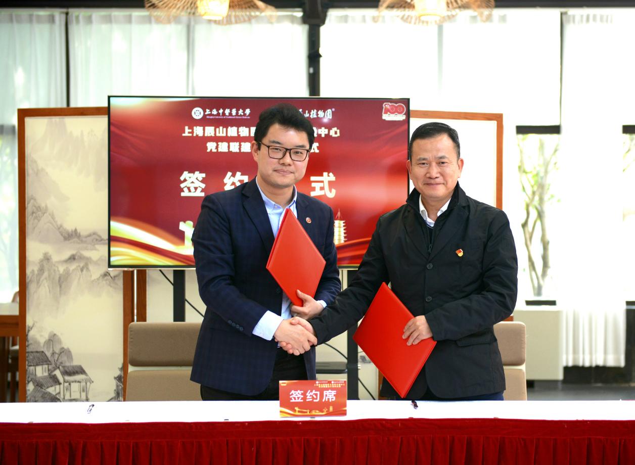 吴平和胡永红代表双方签署《sunbet申搏官方网站与上海辰山植物园共建合作协议》。
