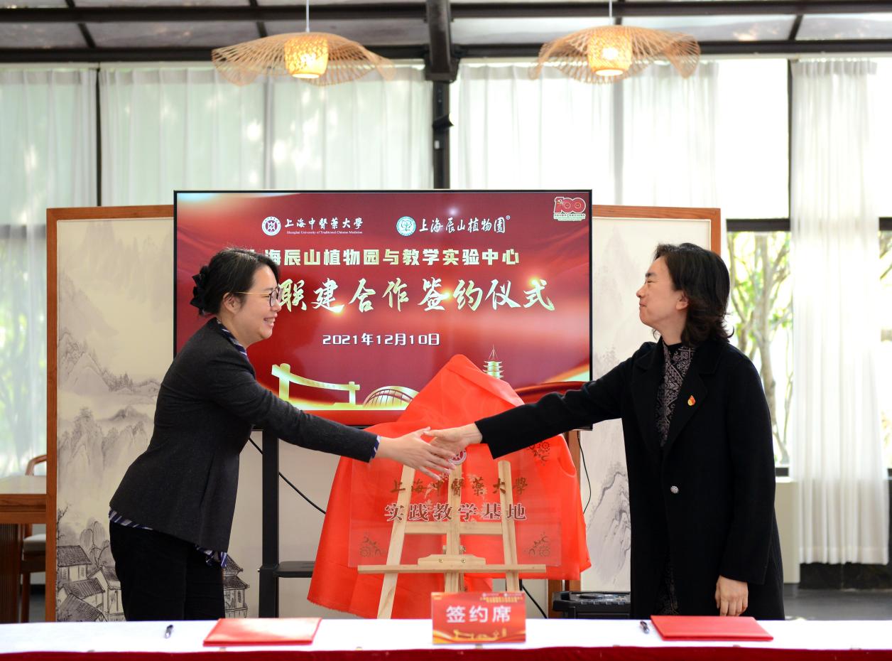 舒静和吉琴为“sunbet申搏官方网站实践教学基地”揭牌,黄卫昌和丁越为“辰山植导站”揭牌。