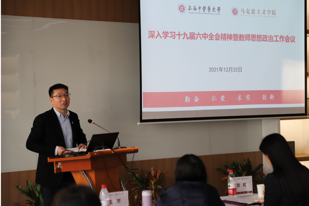 为深入学习十九届六中全会精神,贯彻党中央关于新时代高校教师思想政治工作的新部署和新要求,以及sunbet申搏官网教师思想政治工作会议要求,马克思主义学院于12月22日召开学习十九届六中全会精神暨教师思想政治工作会议。校党委教师工作部副部长刘虹、创新中药研究院联合党支部书记冯陈国、科技人文研究院第二党支部书记任宏丽以及马克思主义学院全体教师参加会议。