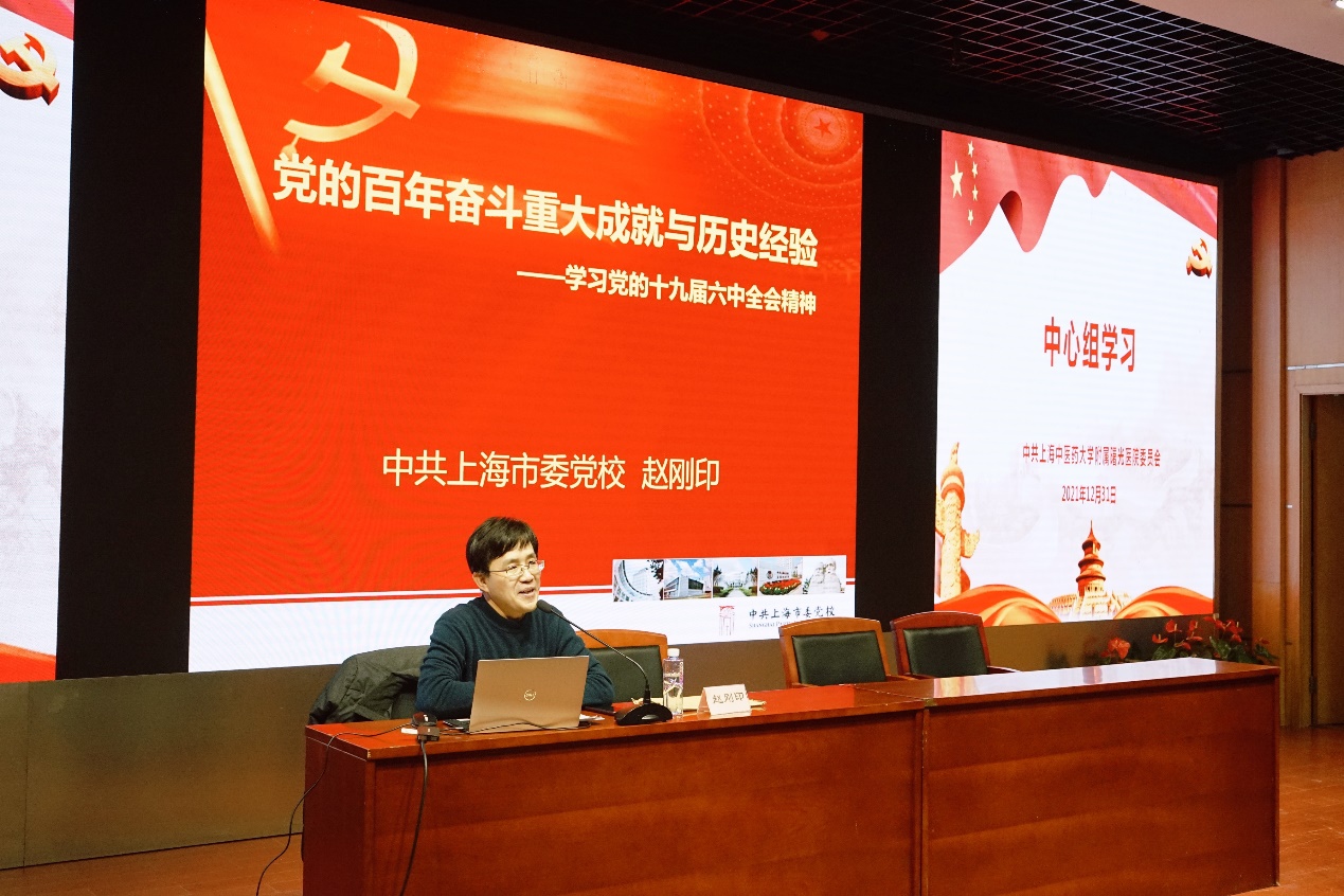 近日,sunbet申搏官网附属曙光医院党委中心组(扩大)学习会在东院二楼学术报告厅举行。上海市委党校赵刚印教授作《党的百年奋斗重大成就与历史经验——学习党的十九届六中全会精神》专题报告。医院党政领导班子、党委委员、纪委委员、党支部书记及各临床、职能部门负责人、各教研室主任、护士长等参加学习会。会议由医院党委副书记郝微微主持。