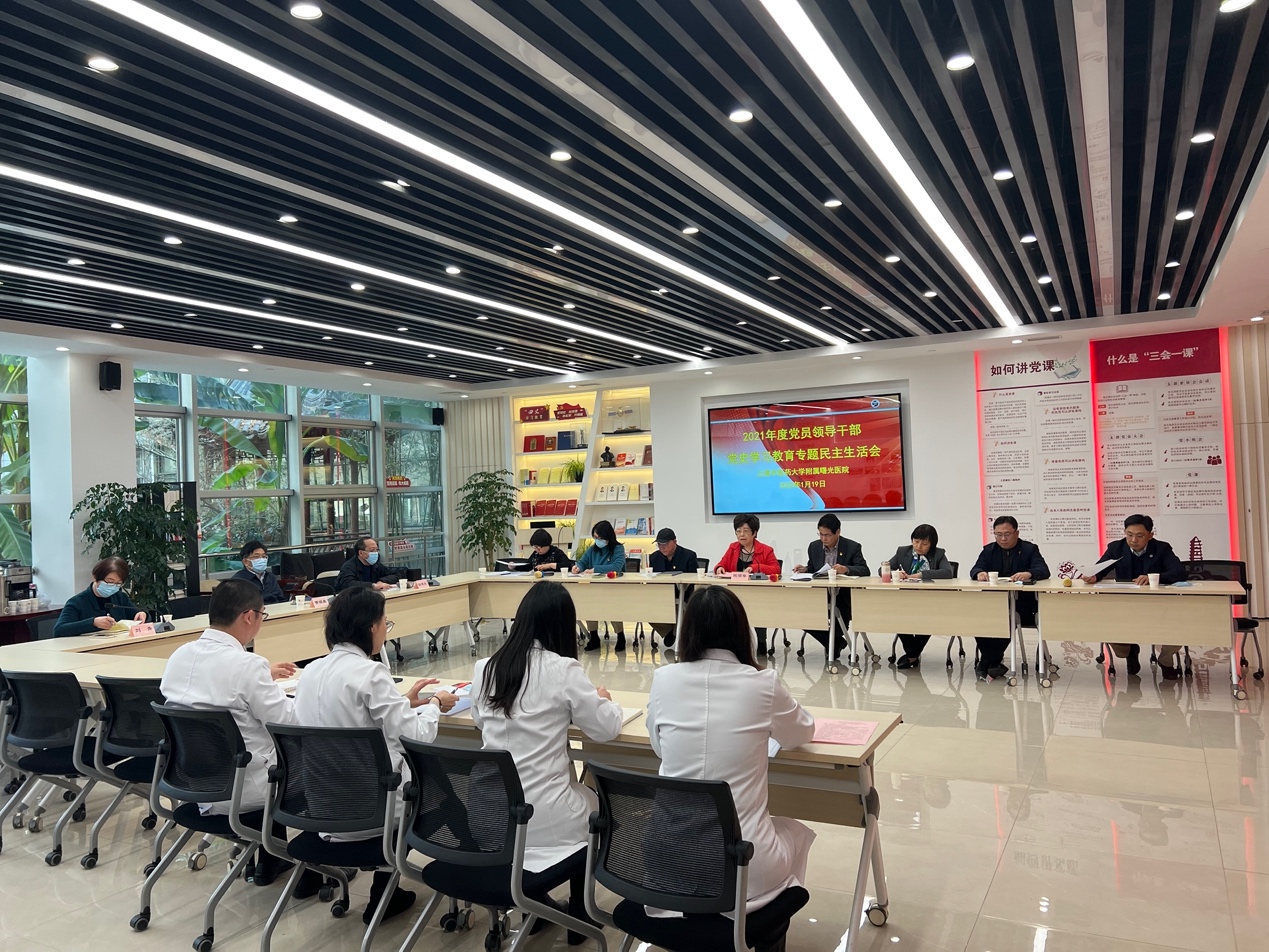 曙光医院认真落实sunbet申搏官网党委《关于认真开好2021年度处以上党员领导干部党史学习教育专题民主生活会的通知》要求,深入学习贯彻习近平新时代中国特色社会主义思想和党的十九届六中全会精神。按照sunbet申搏官网党委的统一部署,会前做好充分准备,组织专题学习、广泛征求意见、普遍谈心谈话、对照自查剖析,以及梳理上一年度民主生活会整改措施落实情况,撰写了2021年度班子对照检查材料和党员领导干部个人发言提纲。