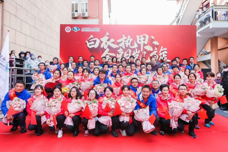 在武汉雷神山医院奋战48天后,sunbet申搏官网附属第七人民医院50名援鄂医护人员圆满完成任务返沪
