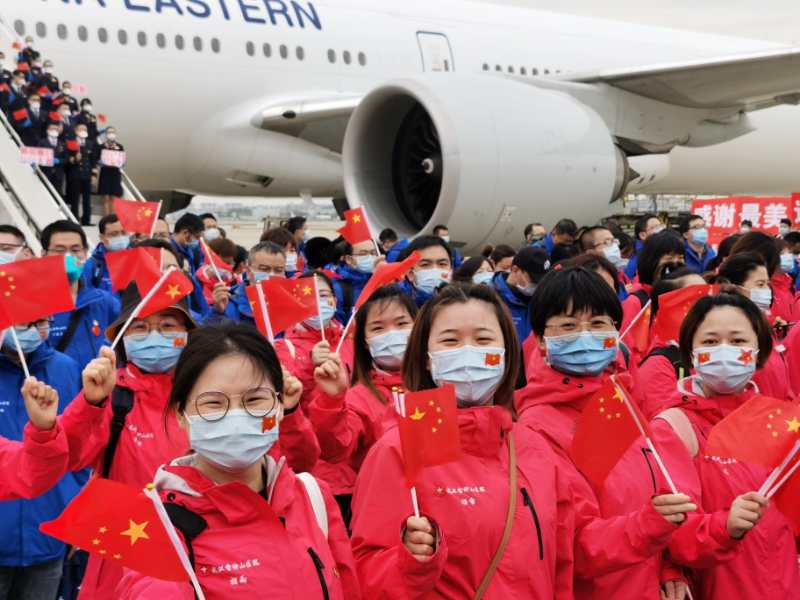 4月6日下午,第七人民医院50名援鄂医护人员圆满完成任务,凯旋返沪