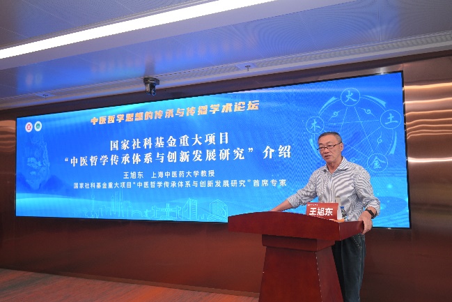 首席专家王旭东教授介绍了国家社科基金重大项目“中医哲学传承体系与创新发展研究”的研究进展。面对“中医哲学内涵边界模糊”“中医哲学的传承体系不清”“如何创新中医哲学研究”等现实挑战,呼吁以本次论坛为契机,通过哲学界与中医界的互动对话,在概念厘清、方法论融合、传播策略创新等领域形成突破性共识。
