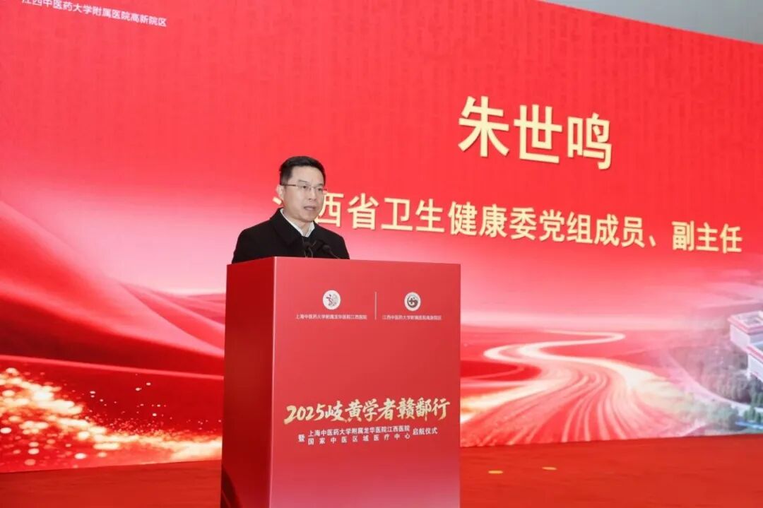 朱世鸣代表江西省卫健委对医院的建成启用表示祝贺,他指出,sunbet申搏官方网站附属龙华医院江西医院的启航,是沪赣两地深化中医药合作的重要里程碑,更是落实国家区域医疗中心建设部署的担当使命,让江西百姓在家门口就能享受到国家级优质中医药服务,有效推动优质医疗资源下沉,进一步降低跨省异地就医比例,为江西中医药事业高质量发展注入强劲动力。朱世鸣表示,“2025岐黄学者赣鄱行”活动的同步启动,国医大师、岐黄学者等中医药领域的顶尖专家来到江西,让专家学者们的智慧扎根赣鄱沃土,助力中医药强省建设再上新台阶。