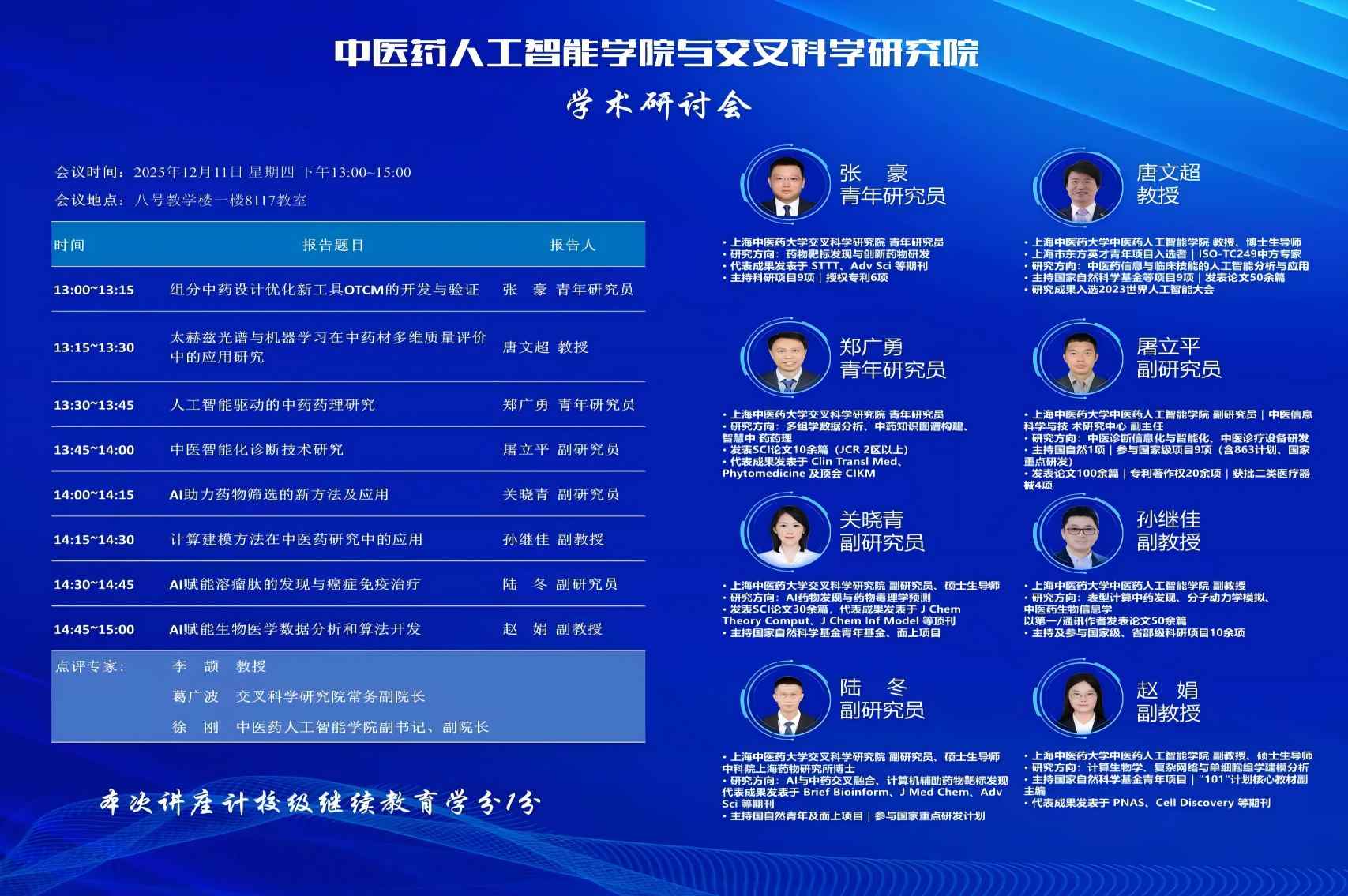 中医药人工智能学院与交叉科学研究院学术研讨会成功举办 —— 跨学科碰撞赋能传统医学创新发展