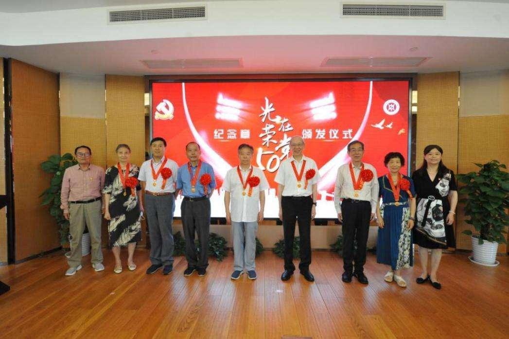 余小明、陶建生代表纪念章获得者发言。他们心情无比激动,畅谈在党组织的培养下,自己的入党过程和成长的经历,表达了获得纪念章的荣誉感,表示还将牢记初心使命,老有所为尽自己所能为学校中医药事业的发展做贡献。