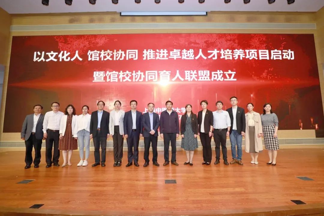 为推动主题教育高校师生红色实践学,大会举行“以文化人:馆校协同推进卓越人才培养项目”启动暨馆校协同育人联盟成立仪式,sunbet申搏官方网站牵头,与上海科技馆、中共一大会址纪念馆、中共二大会址纪念馆、中共四大纪念馆、上海龙华烈士陵园(龙华烈士纪念馆)、上海市历史博物馆(上海革命历史博物馆)、上海市档案馆、上海淞沪抗战纪念馆、上海市奉贤区博物馆、上海中医药博物馆,以及同济大学、华东理工大学、上海大学、上海科技大学组成“十馆五校”联盟单位,依托上海作为党的诞生地、初心始发地所拥有的丰富红色资源,馆校协同加强大学生党史学习教育,开拓文化育人新阵地。五所高校将选拔培养一批优秀学生骨干队伍,组建学生宣讲团,依托志愿服务和勤工助学平台进入场馆开展体验式、浸润式实践教育。十家场馆将充分发挥资源优势,通过校园巡展、主题讲座等多种形式,扎实推进红色文化走进校园、走上课堂,着力打造服务“大思政课”实践的优质服务平台。