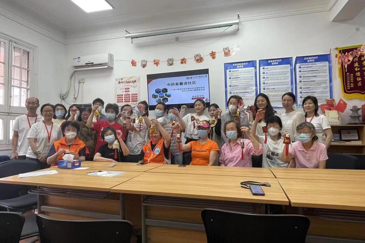 5月16日,基础医学院研究生党支部在支部书记周健明的带领下,来到延中居委会为参加活动的老年人讲解中药香囊的传统和效用。周鑫玥、申柳、钟婉玉等指导老人们一起制作属于自己的香囊。老人们觉得自制香囊安全又健康,还能体验手工制作的乐趣,通过这样的活动既能重温传统习俗,又能学到保健养生知识,觉得非常开心。活动结束后,师生们与社区志愿者进行深入交流,总结在各类群体中开展中医药文化和健康知识宣讲的经验。支部计划在张江共建村居、杨浦区部分居民小区继续开展中药香囊进社区活动。