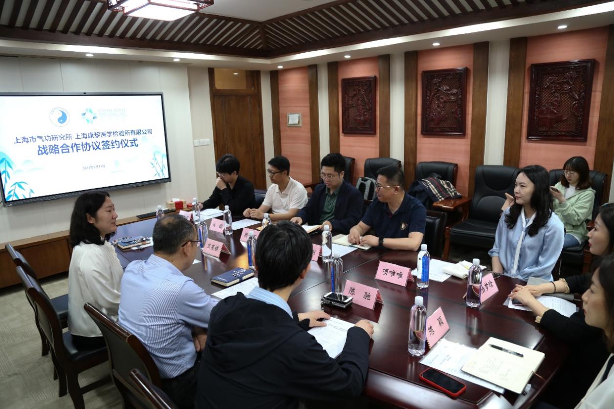 5月17日上午,上海市气功研究所与上海康黎医学检验所有限公司举行战略合作协议签约仪式。上海枫林集团副总经理、枫林经济发展有限公司总经理陈颖、企业发展部主管陆梦晗,上海康黎医学检验所有限公司总经理何炯、副总裁杨大可,上海市气功研究所所长许峰、副所长竺英祺及两家合作单位相关人员等出席,竺英祺主持会议。