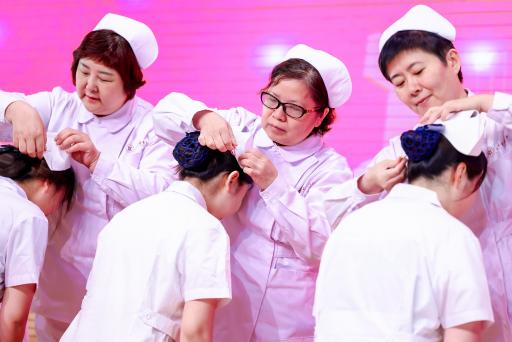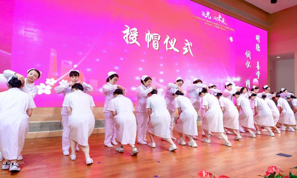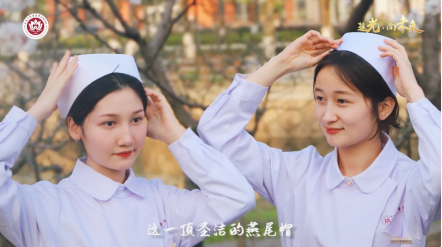 来自sunbet申搏官网9家附属医院的护理部主任及学院教师代表,为近200名学生逐一戴上神圣的燕尾帽。