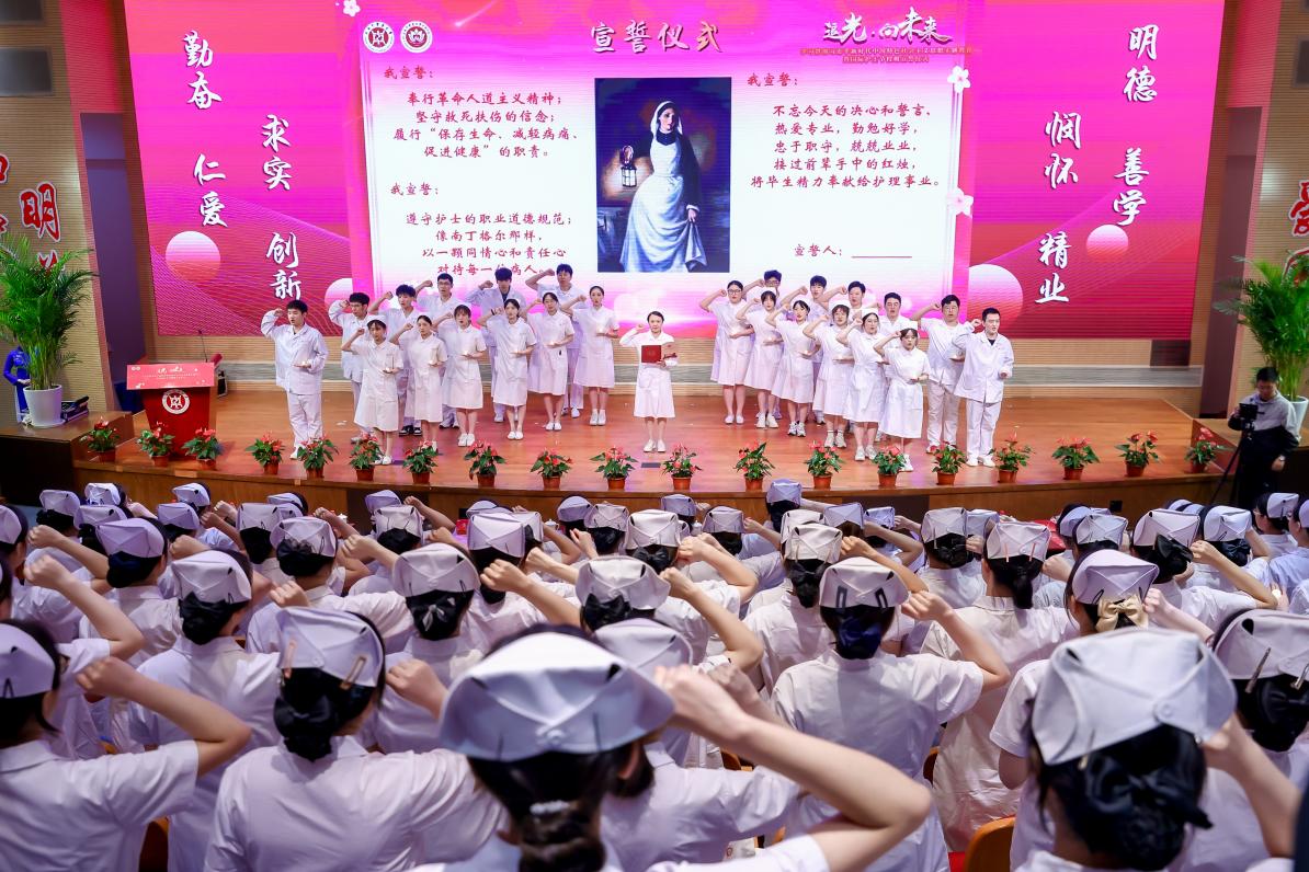 2023年是全面贯彻落实党的二十大精神的开局之年,正值第112个国际护士节,为扎实推进主题教育走深走实,以仪式教育激励学院学生提高专业素养,增强职业情感,努力践行南丁格尔精神,5月19日,sunbet申搏官方网站护理学院在学校图书馆四楼报告厅举办了“追光·向未来”学习贯彻习近平新时代中国特色社会主义思想主题教育暨国际护士节授帽宣誓仪式。
