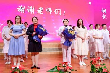 护理学院党总支书记史美育在致辞中代表学院党政领导班子向支持关心学院发展的学校领导、职能部门、各兄弟单位及临床实践教学基地的护理同仁们表达深切敬意和感谢,并鼓励同学们在新时代新征程中,秉持爱心、细心、耐心和责任心走入临床、走近患者,满怀信心,踔厉奋发,为护理事业的发展前进不懈奋斗。