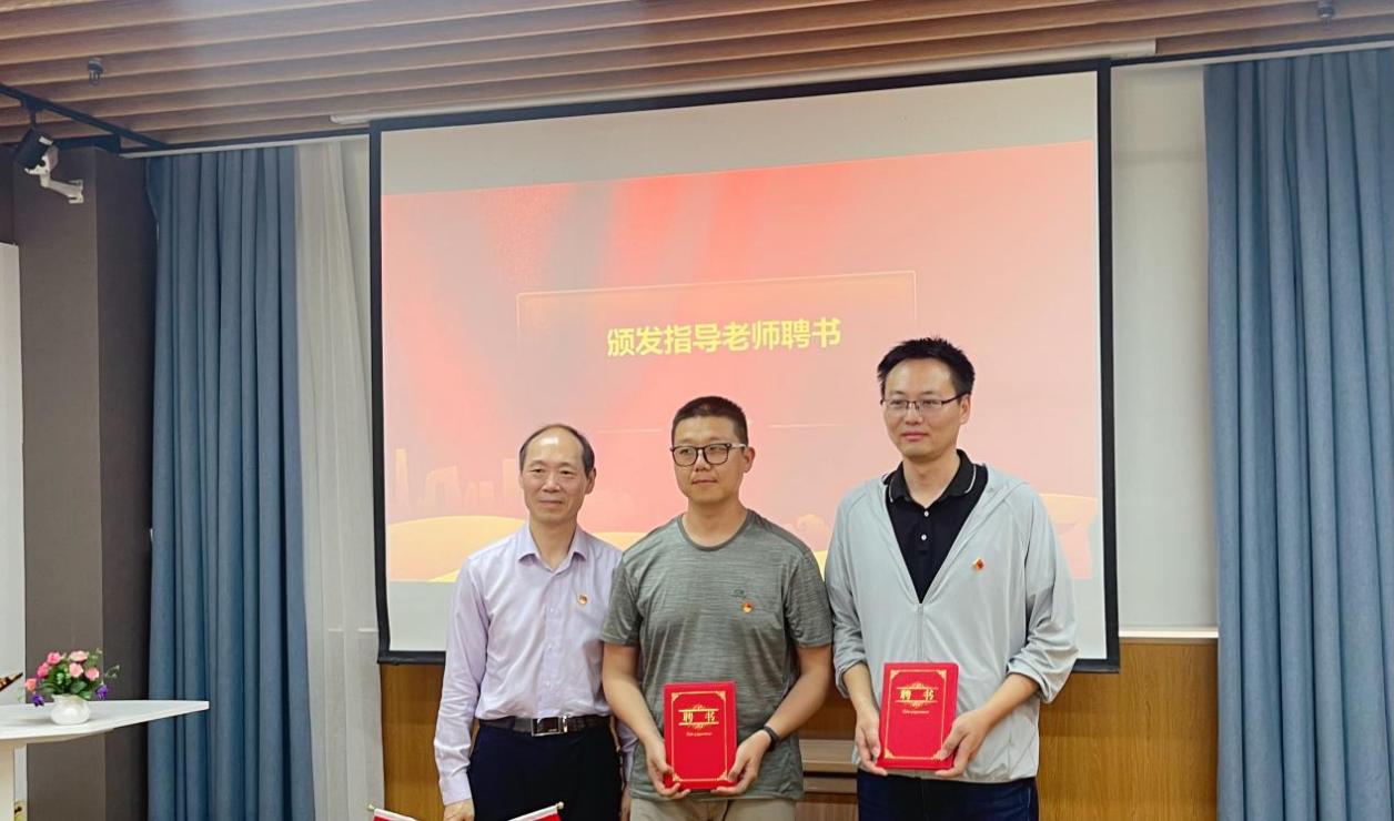 护理学院史美育为后勤保障处邓洪、卜国桢颁发指导老师聘书。后勤保障处与会人员为护理学院学生佩戴“首批校园生态养护助管员”徽章,双方将共同培育一支建设生态校园劳育实践队伍,更好地发挥各自资源优势,拓展劳动育人实践岗位,携手师生共建生态文明校园,协同共建良好育人环境。
