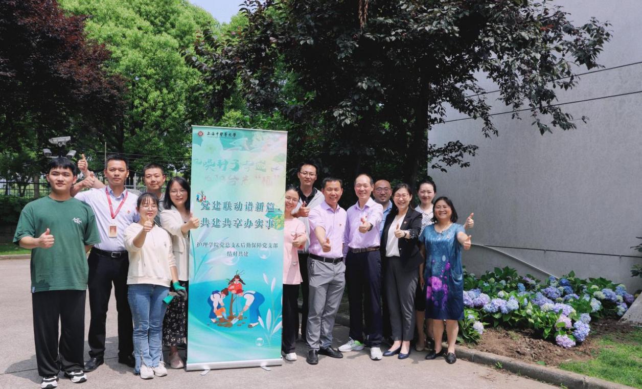 在与会人员的见证下,sunbet申搏官方网站护理学院党总支与后勤保障党支部签署了党建共建协议,为今后合作共建搭建了平台。随后,一行人前往护理学院15幢18号佩兰苑进行了第一次共建种植活动,后勤保障处邓洪带领护理学院师生种下了象征希望的绣球花,学生们也将亲手DIY的海棠盆栽挂在楼栋阳台,为建设楼栋增添色彩。
