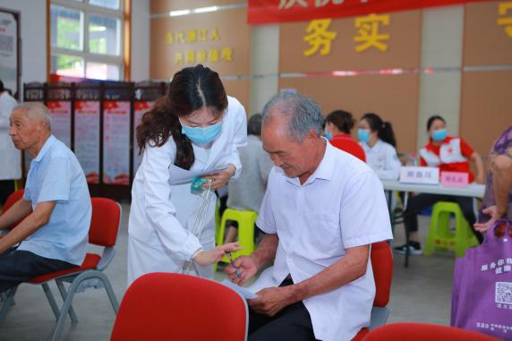 18日上午,师生志愿者参与了由慈溪市卫生健康局主办,慈溪市中西医结合医疗健康集团、宗汉街道庙山村承办,慈溪市妇幼保健院、慈溪华阳口腔医院、慈溪宝春堂中医医院、慈溪协爱中医医院等单位参加的“医心向党 慈心为民 党建同行——‘健康送百村’活动启动仪式”,并参与中医义诊活动。科技人文研究院师生为庙山村居民开展了中医内科、中医妇科、心血管科和针灸科等的健康咨询活动。