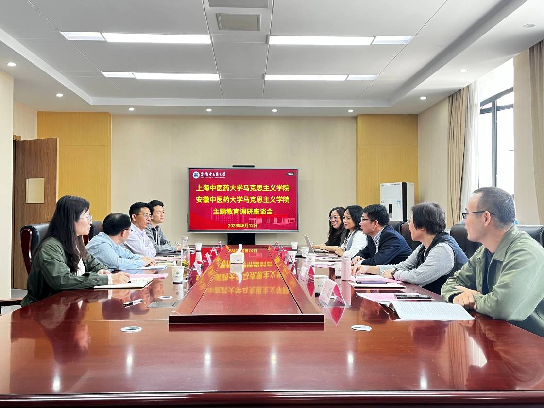 5月11日至12日,马克思主义学院党总支书记陶思亮一行5人赴安徽中医药大学马克思主义学院调研。安徽中医药大学马克思主义学院党总支书记黄学武、院长董玉节、副院长郭跃、教师代表参加此次调研座谈会。安徽中医药大学马克思主义学院党政领导就学院概况、党建工作、师资队伍建设、学科学位点建设、青年教师培养等方面的经验做法作了详细介绍。双方围绕行业特色院校的马克思主义学院建设着力点、马克思主义理论学科建设特色、党建特色等展开深入讨论。针对当前中医药院校马克思主义学院研究生培养现状,双方就搭建跨界协同培养研究生平台建设达成共识。围绕中医药院校马克思主义学院如何开展“两个结合”学术研究,双方进行了有益探讨。陶思亮一行专题调研了安徽中医药大学新安医学文化馆的建设情况。
