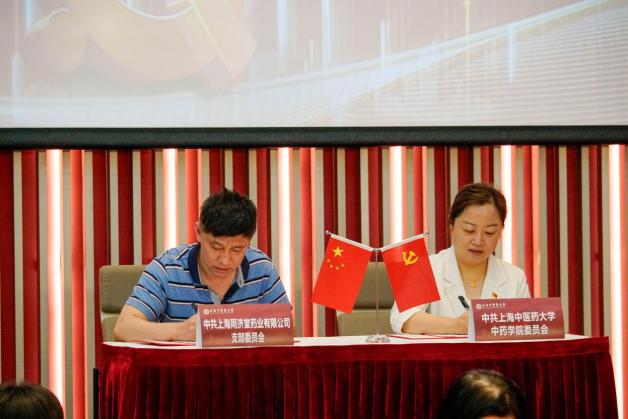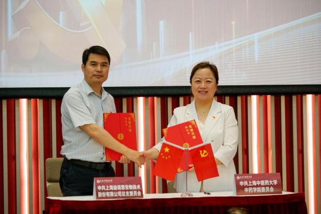 随后,王璐、沈岚,以及上海市药材有限公司党委副书记、工会主席凌文婕,上海雷允上药业西区有限公司党总支书记龚伶伶,上海和黄药业有限公司党委书记万斌,上海益诺思生物技术股份有限公司党总支副书记邱云良,上海同济堂药业有限公司经理程晓东,上海益诺思生物技术股份有限公司崔桂花、上海雷允上药业有限公司副总经理李琦上台共同见证校企党建共建联盟启动。在与会领导嘉宾的见证下,沈岚与各企业党建工作负责人签署了校企党建共建协议。