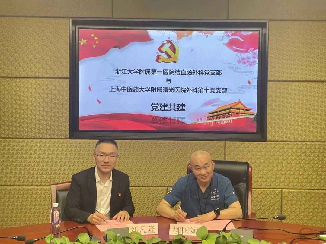 为充分发挥党建引领,整合各项资源,凝聚多方力量,在结直肠疾病健康医疗工作中促进长三角一体化建设,着力构建党建联建新格局,近日曙光医院外科第十党支部与浙江大学附属第一医院结直肠外科党支部举行党建共建签约仪式,曙光医院外科第十党支部书记柳国斌、肛肠科主任郑德,浙江大学医学院附属第一医院结直肠外科党支部书记刘凡隆及党员代表参加了此次共建活动。