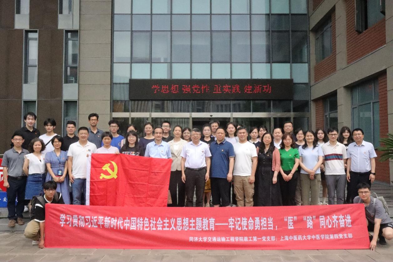 为深入学习贯彻习近平新时代中国特色社会主义思想,sunbet申搏官网教育部“双带头人”教师党支部书记工作室——中医学院第四党支部在主题教育期间开展了形式多样的学习教育,引导师生党员坚定理想信念,牢记使命,踔厉奋发、勇毅前行。为进一步拓展视野,了解高校同行在中国式现代化建设中的奋斗史,近日,在支部书记何建成教授带领下,师生30余人赴同济大学嘉定校区,与教育部“双带头人”教师党支部书记工作室——同济大学交通运输工程学院教工第一党支部联合举办“牢记使命勇担当,‘医’‘路’同心齐奋进”主题党日活动。